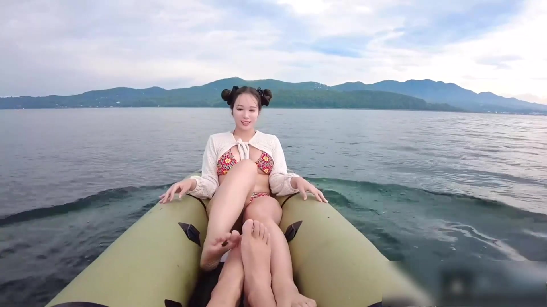 【69堂午夜视频】白裙丸子头嫩妹船上直接掰逼开操内射